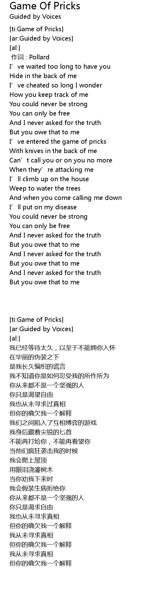 | [ti:Game of Pricks] | |