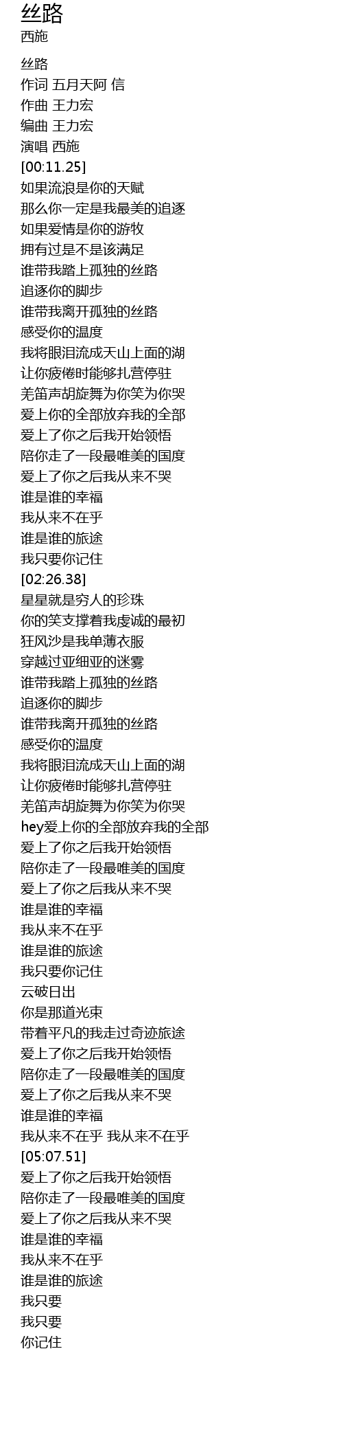 | [03:25.43] | 谁带我离开孤独的丝路 |