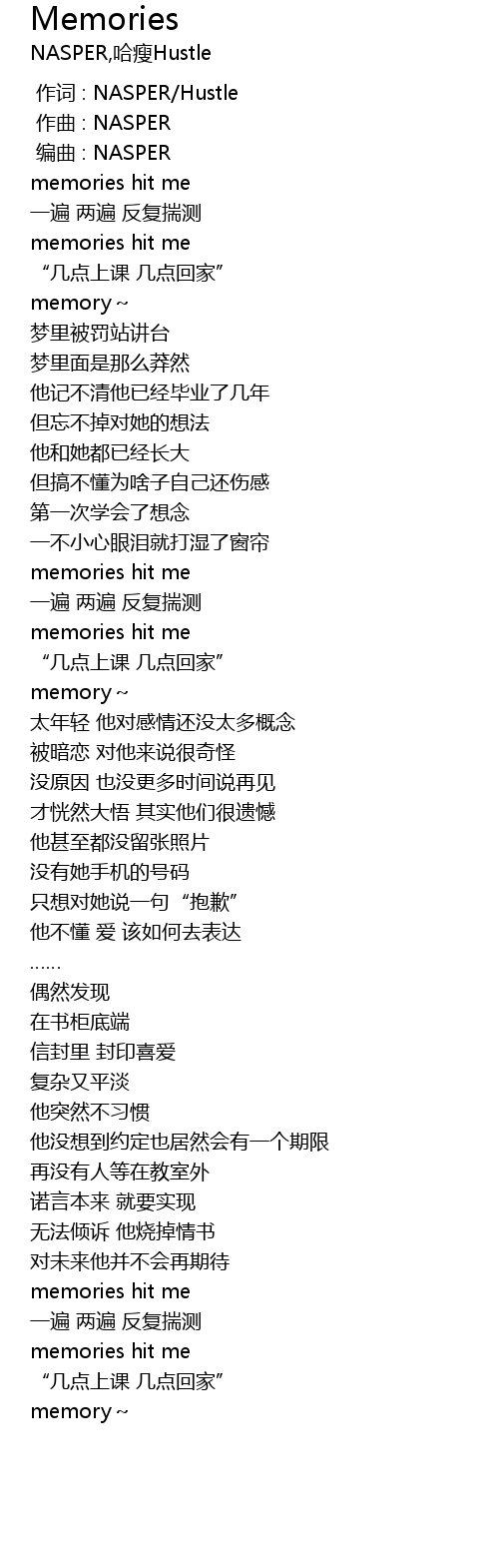 | [00:00.000] | 作词 : NASPER/Hustle |