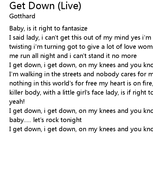 | I get down, i get down, on my knees and you know, yes you know, how to tease, baby..... let's rock tonight | |