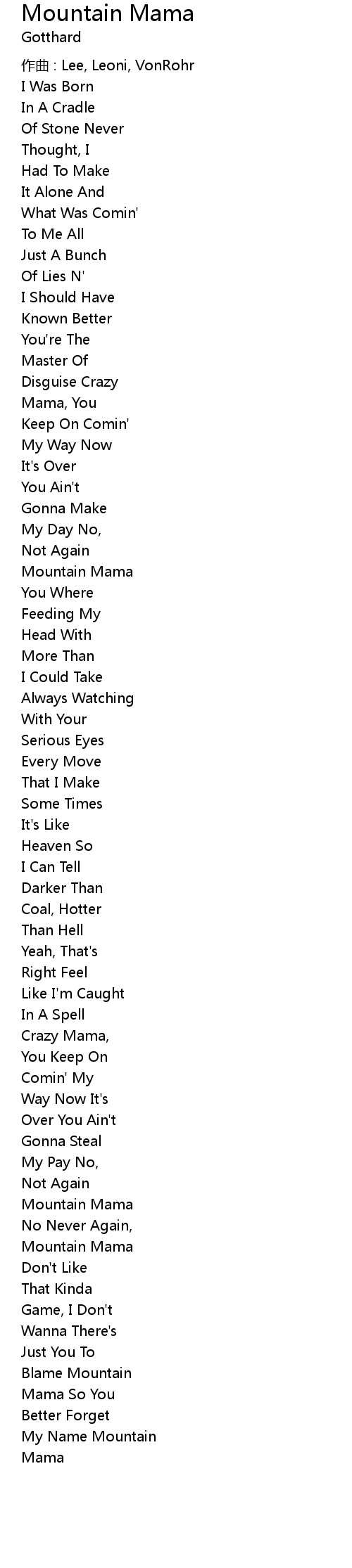| 歌曲 | Mountain Mama |