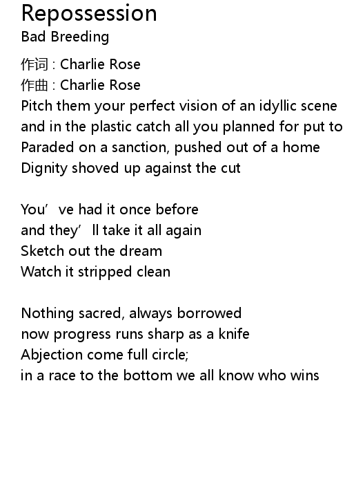 | 歌曲 | Repossession |