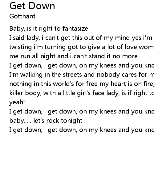 | I get down, i get down, on my knees and you know, yes you know, how to tease, baby..... let's rock tonight | |