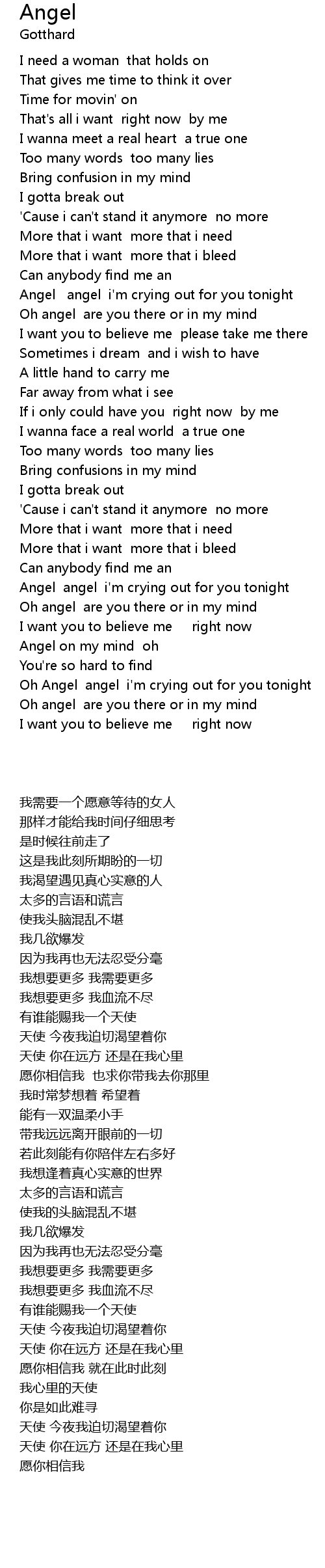 Oh Angel angel i'm crying out for you tonight |