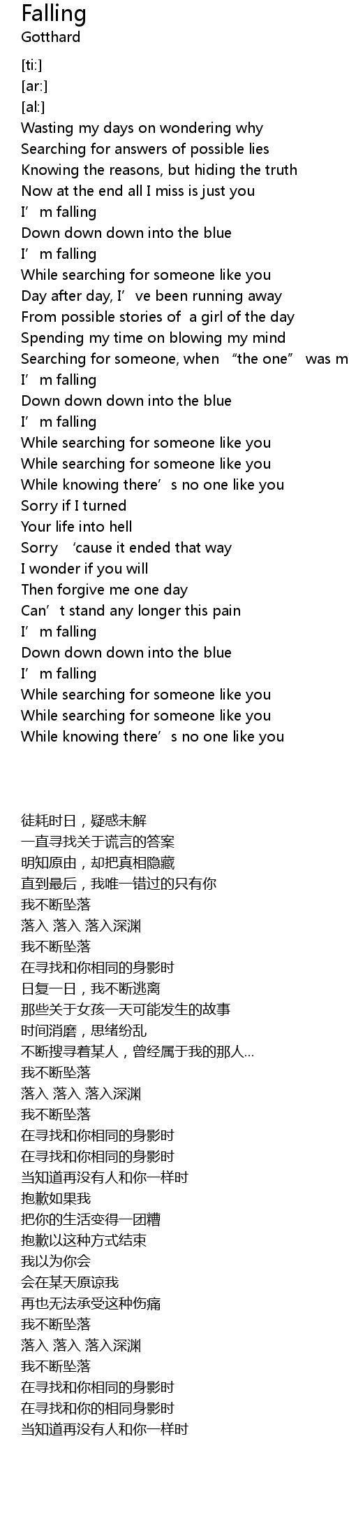 | [00:40.87] | I' m falling |