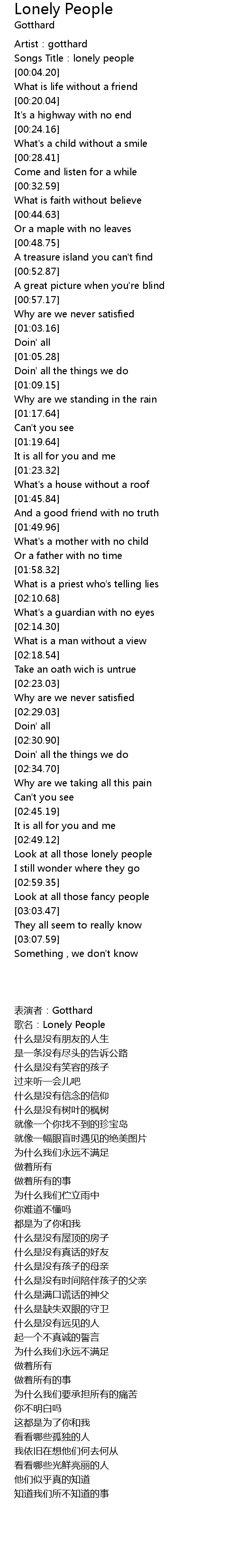 | [02:52.18] | Look at all those lonely people |