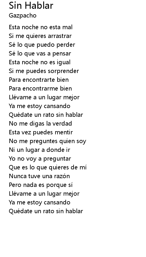 | Que date un rato sin hablar |