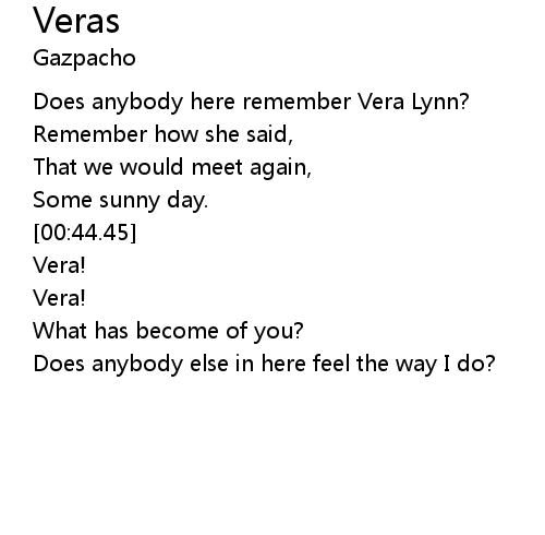 | [00:22.31] | Does anybody here remember Vera Lynn? |