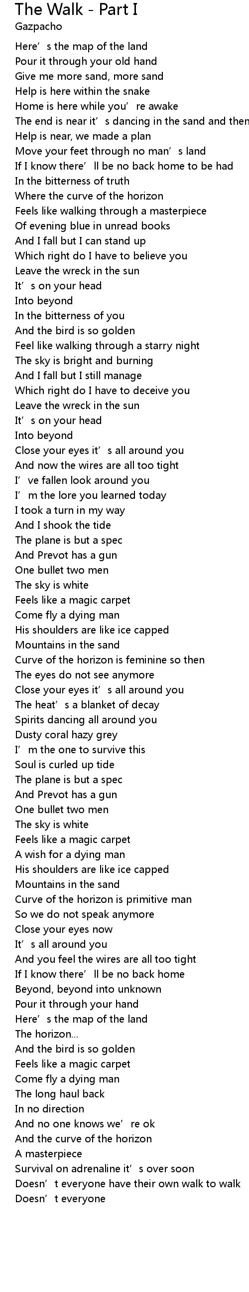 | The end is near it' s dancing in the sand and then you try to be mosaic | |