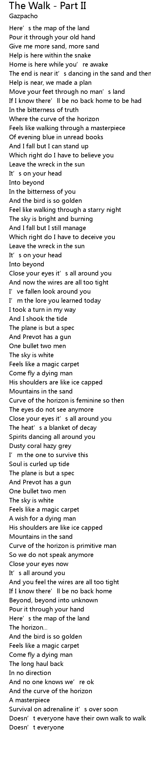 The Walk - Part II 歌词