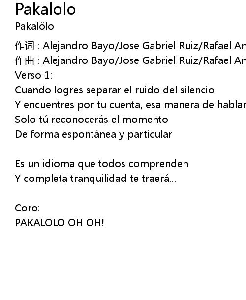 | 作词 : Alejandro Bayo/Jose Gabriel Ruiz/Rafael Antolinez | |