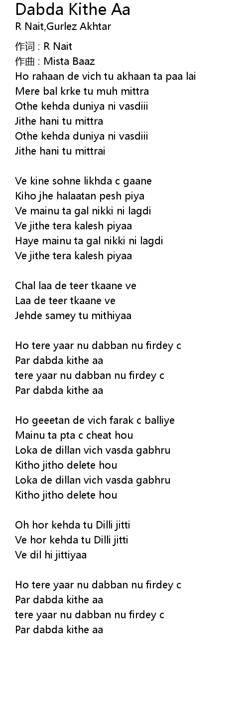 | 歌曲 | Dabda Kithe Aa |