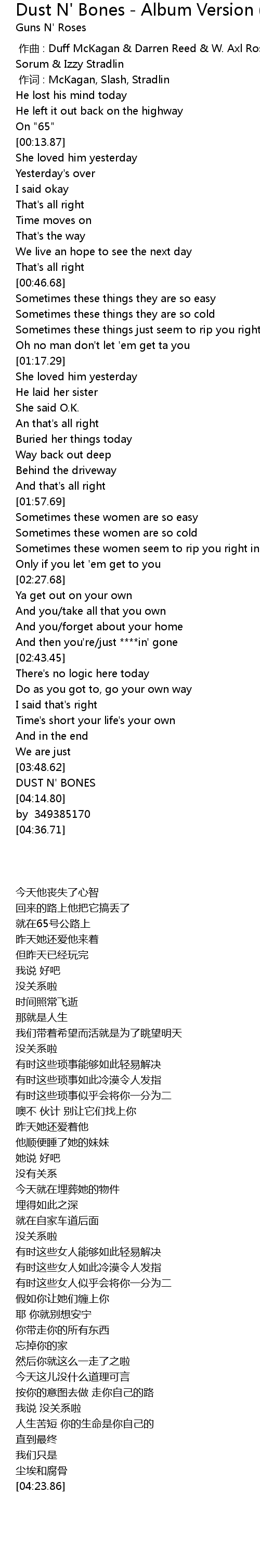 | [03:49.32] | 尘埃和腐骨 |