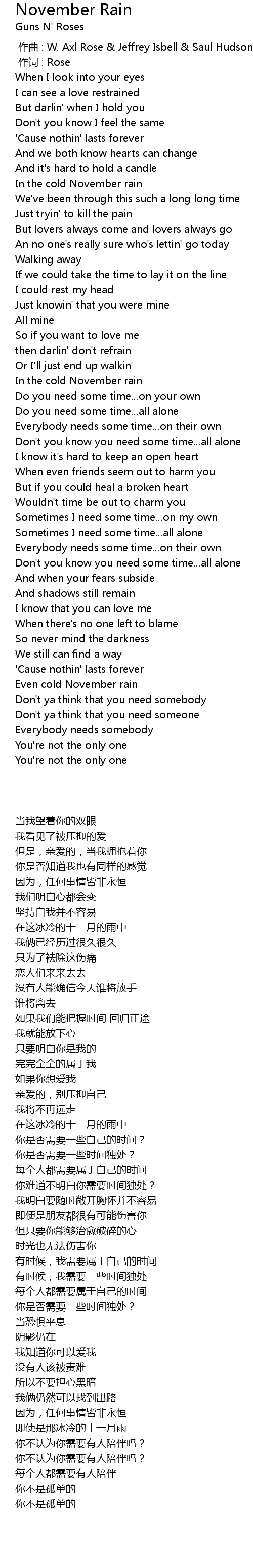 | [02:57.060] | In the cold November rain |