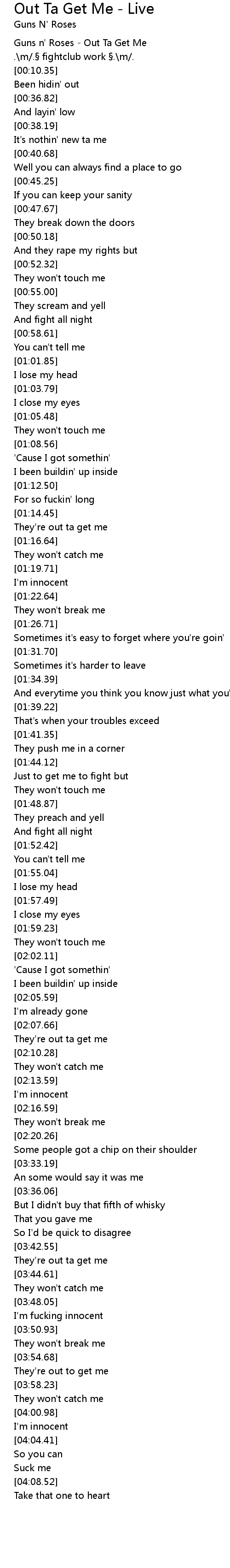 | [00:03.80] | Guns n' Roses Out Ta Get Me |