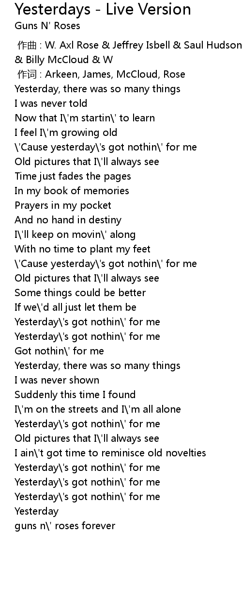 | 歌曲 | Yesterdays - Live Version |