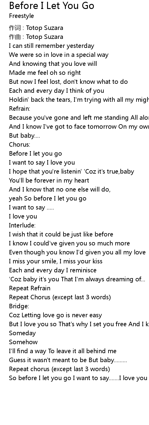 | 歌曲 | Before I Let You Go |