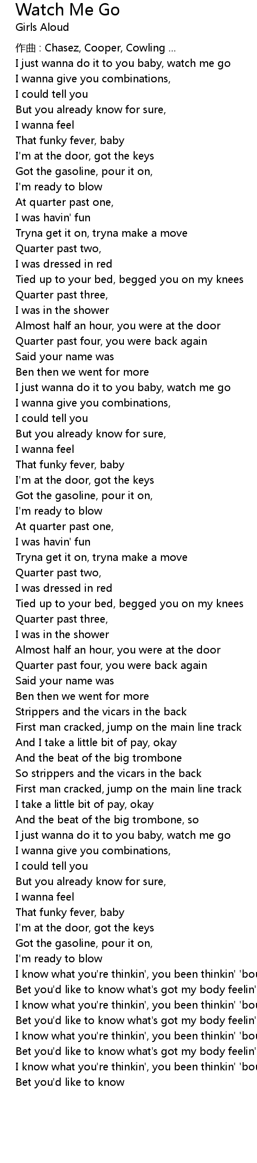 | I just wanna do it to you baby, watch me go | |