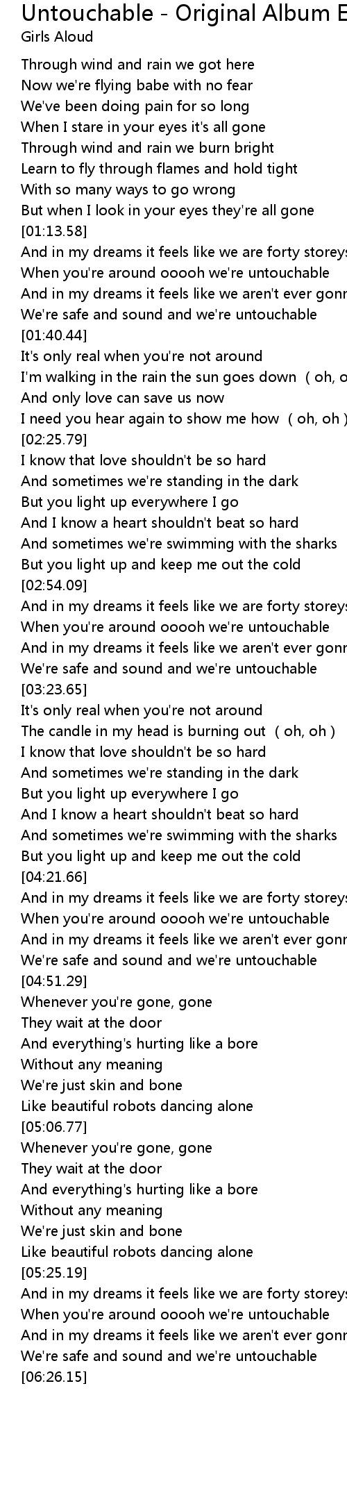 | [01:21.18] | When you're around ooooh we're untouchable |