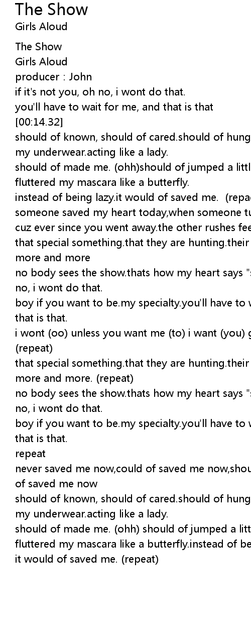 | [02:52.44] | should of made me. (ohh) should of jumped a little high.should of fluttered my mascara like a butterfly.instead of being lazy. |