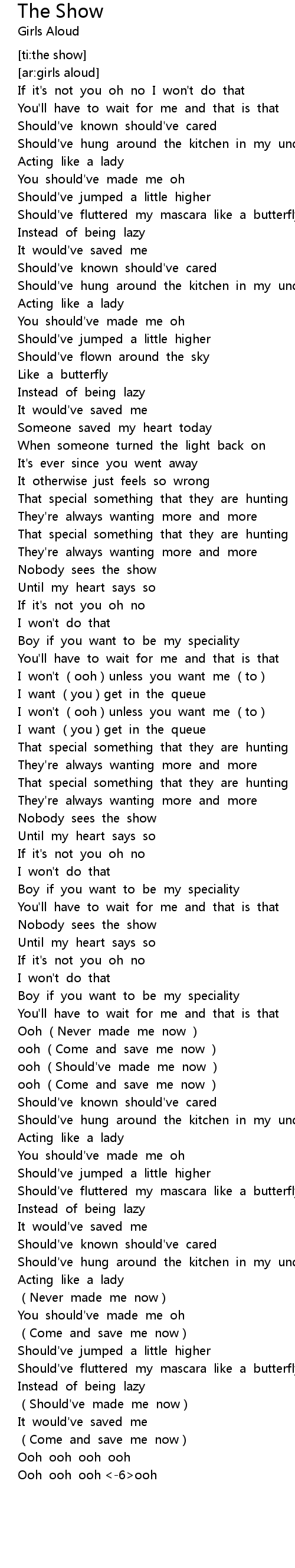 | [02:56.14] | Should' ve fluttered my mascara like a butterfly |