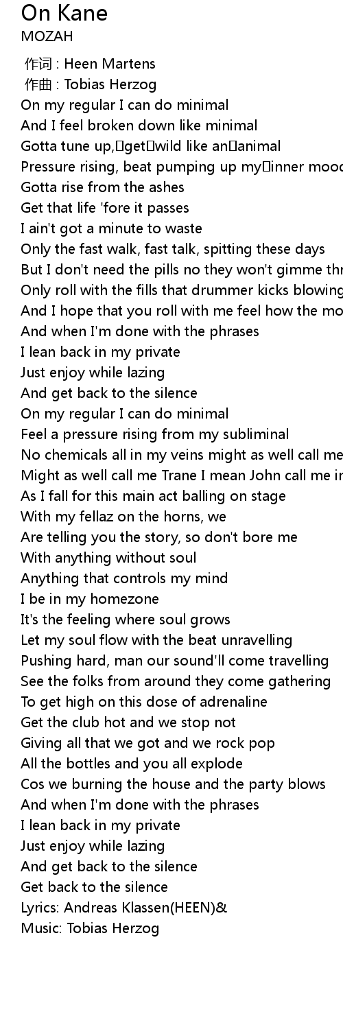 | [02:05.278] | No chemicals all in my veins might as well call me kane |