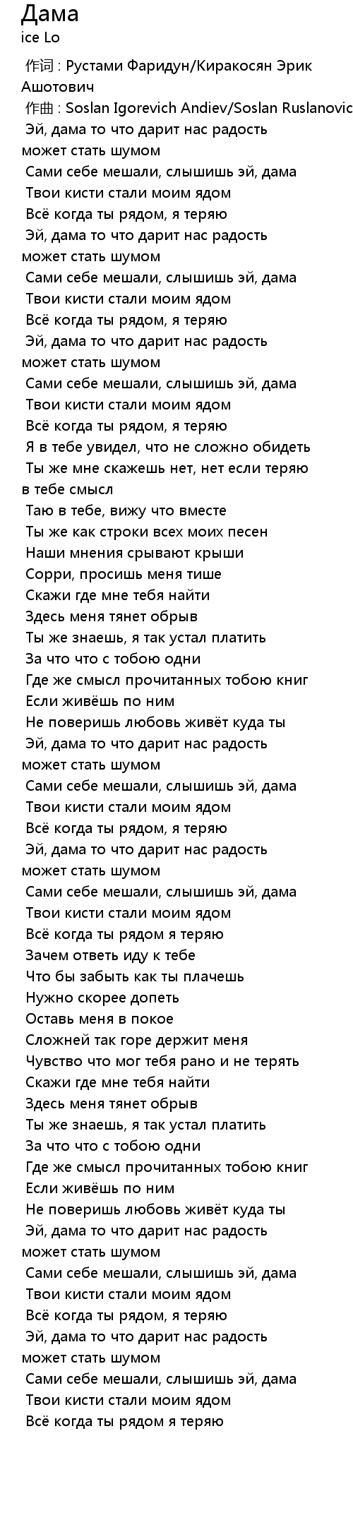作词 : Рустами Фаридун/Киракосян Эрик Ашотович |