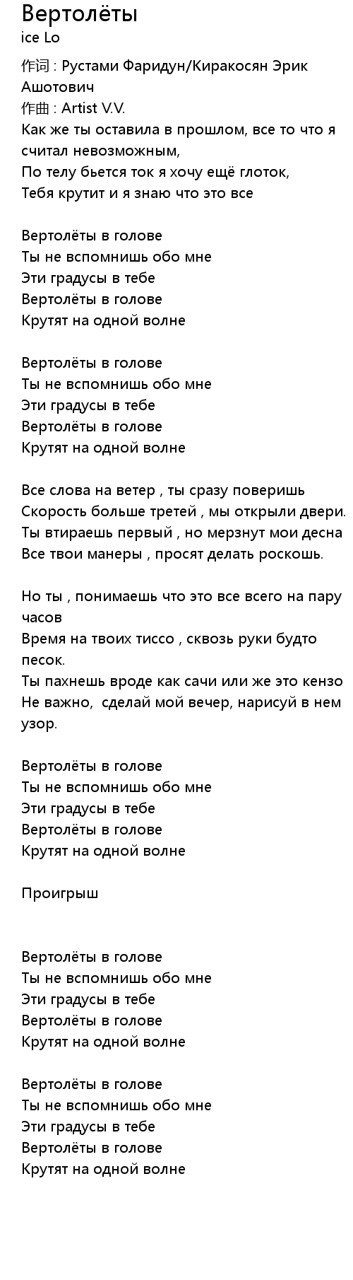 作词 : Рустами Фаридун/Киракосян Эрик Ашотович |