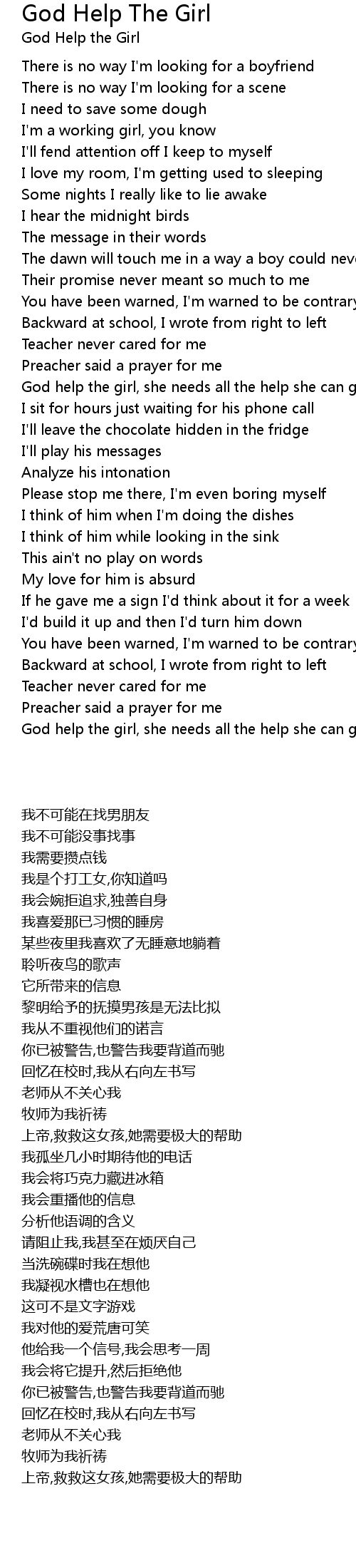 God help the girl, she needs all the help she can get |