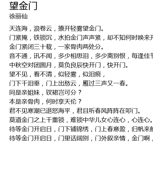 | [02:04.000] | 金门紧闭三十载,一家骨肉两处分。 |