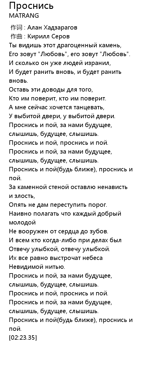 Проснись и пой(будь ближе), проснись и пой. |