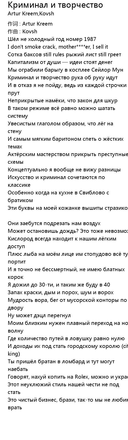 Криминал и творчество 歌词