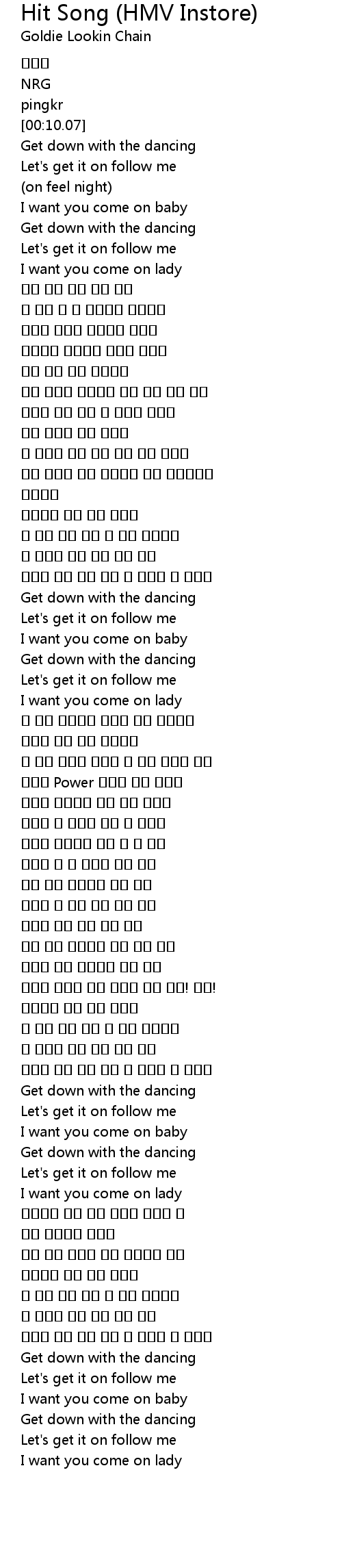 | [00:16.43] | Let' s get it on follow me |