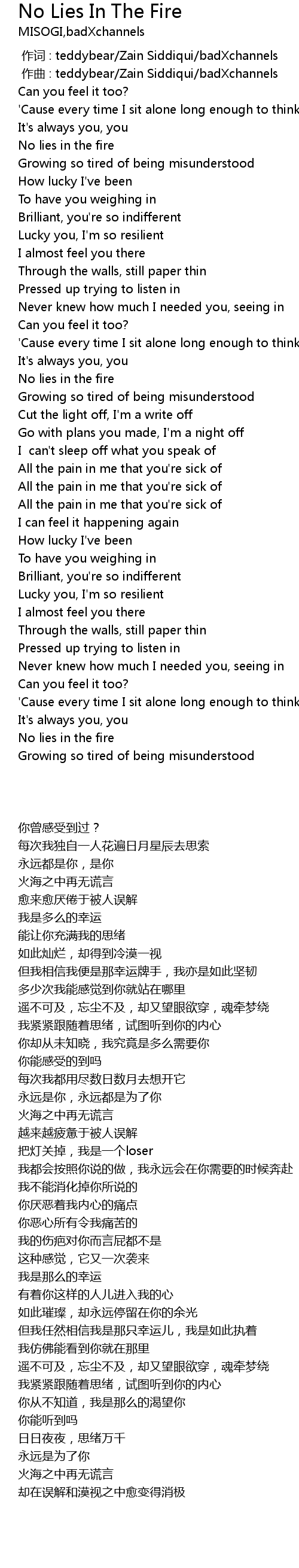 | [00:01.000] | zuo qu : teddybear Zain Siddiqui badXchannels |
