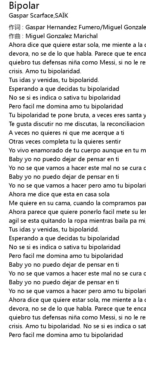 | Ahora parece que quiere ponerlo facil mete su lengua en mi boca un movimiento agil se esta quitando la ropa mientras baila pa mi, amo tu bipolaridad | |