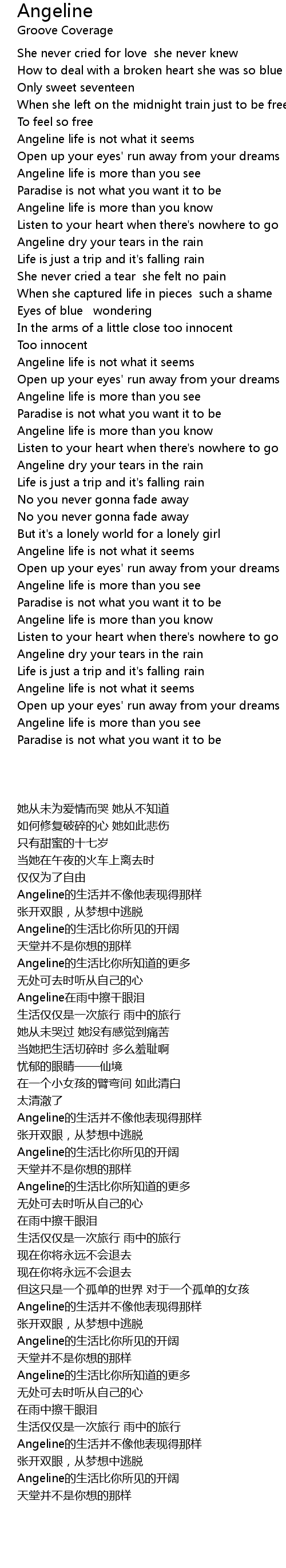 Angeline dry your tears in the rain |