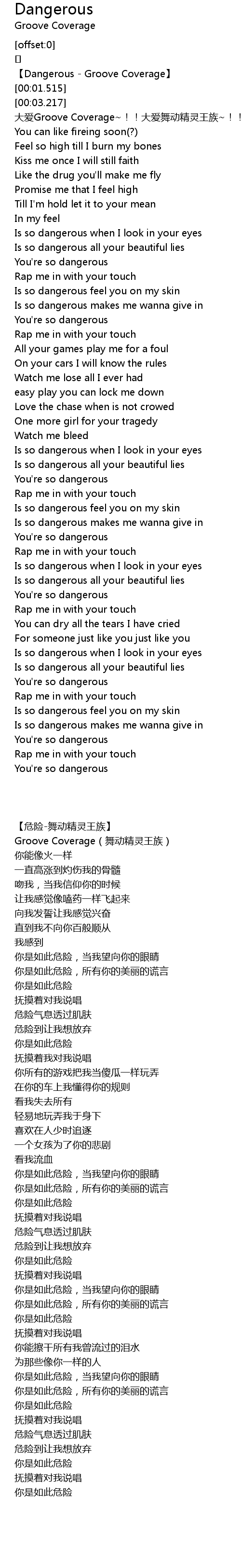 | [00:00.398] | 【Dangerous - Groove Coverage】 |