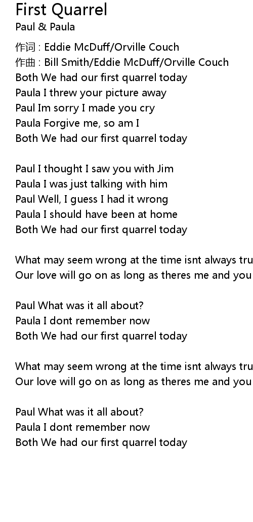 | 歌曲 | First Quarrel |