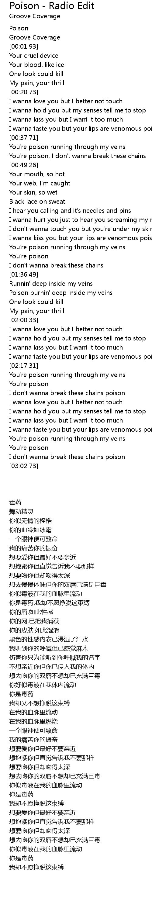 I wanna taste you but your lips are venomous poison |