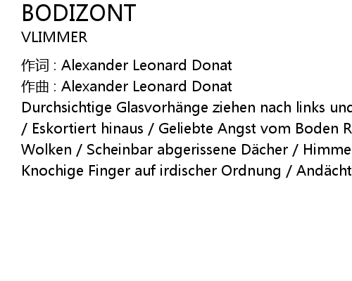 | Durchsichtige Glasvorh nge ziehen nach links und rechts Silhouetten dahinter Eskortiert hinaus Geliebte Angst vom Boden Richtung Horizont Rotschwü le Wolken Scheinbar abgerissene D cher Himmelw rts ins Schwarze flie end Knochige Finger auf irdischer Ordnung And chtig f llt das Reich zusammen |