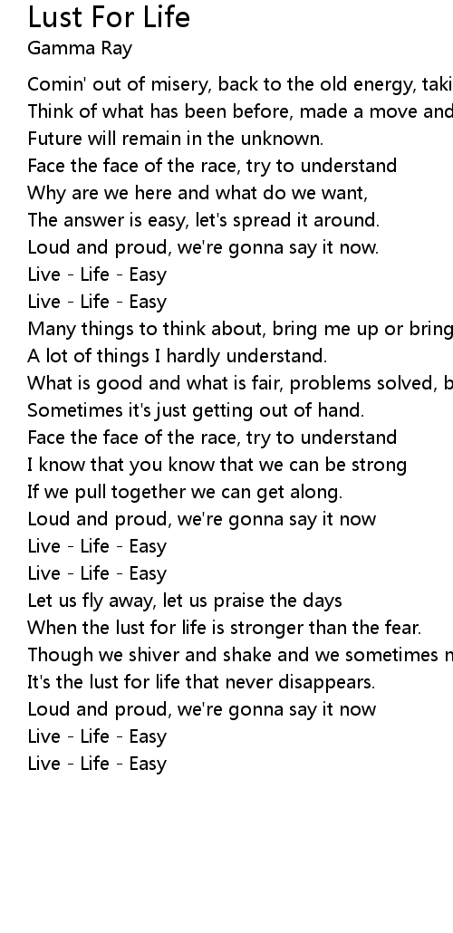 It's the lust for life that never disappears. |