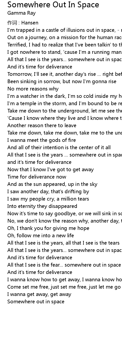| I'm trapped in a castle of illusions out in space, - no more illusions - | |