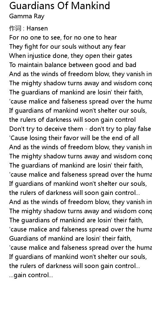 | 歌曲 | Guardians Of Mankind |