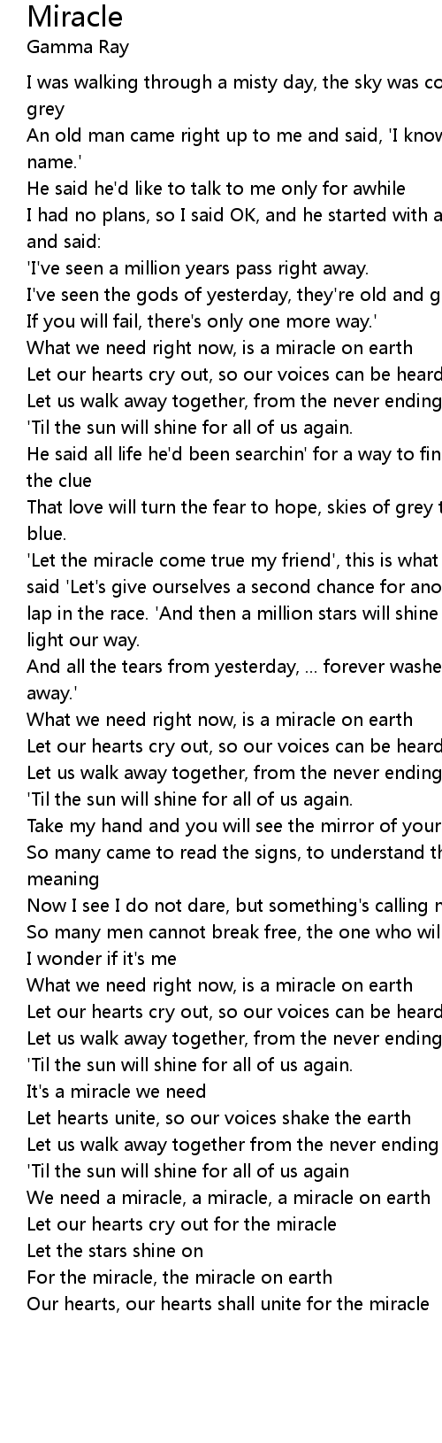 What we need right now, is a miracle on earth |