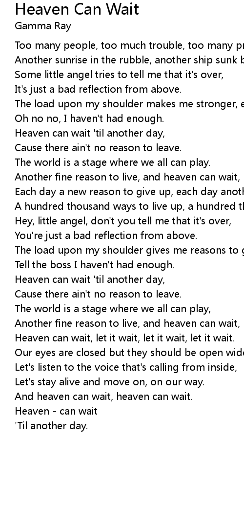 Another fine reason to live, and heaven can wait, heaven can wait.