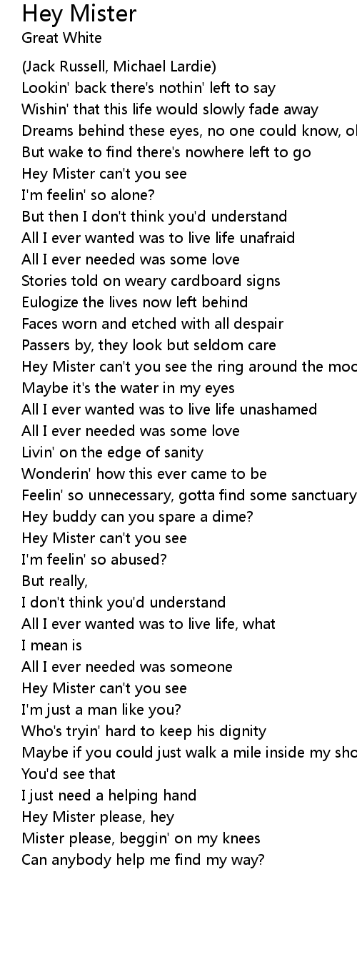 Hey Mister please, hey |