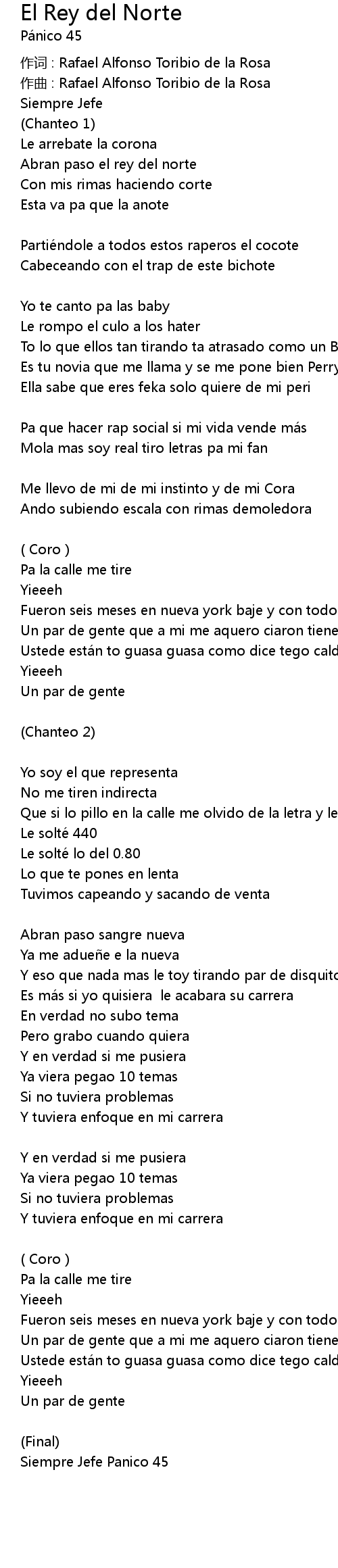 | 歌曲 | El Rey del Norte |