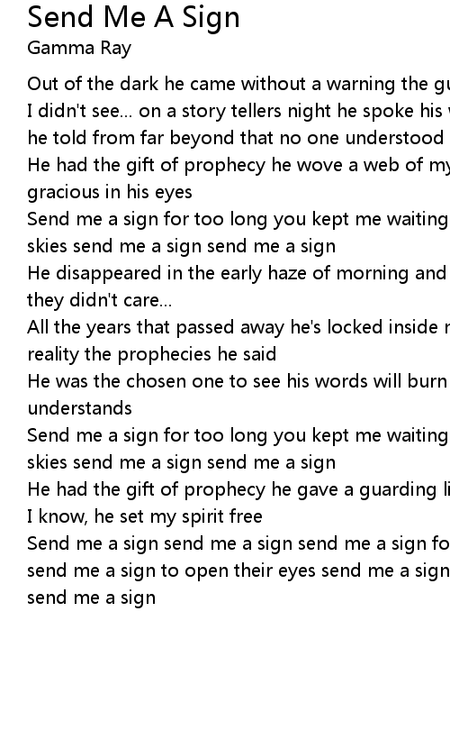 Send me a sign send me a sign send me a sign for too long you kept me waiting send me a sign to open their eyes send me a sign send me a sign send me a sign send me a sign