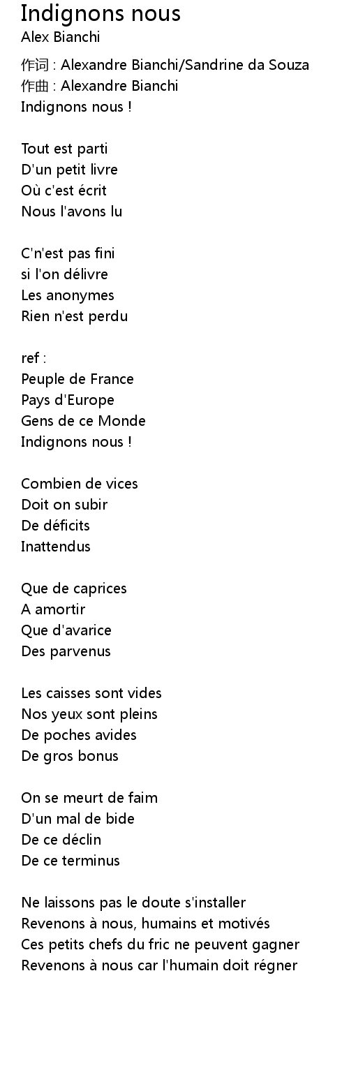 | 作词 : Alexandre Bianchi/Sandrine da Souza | |