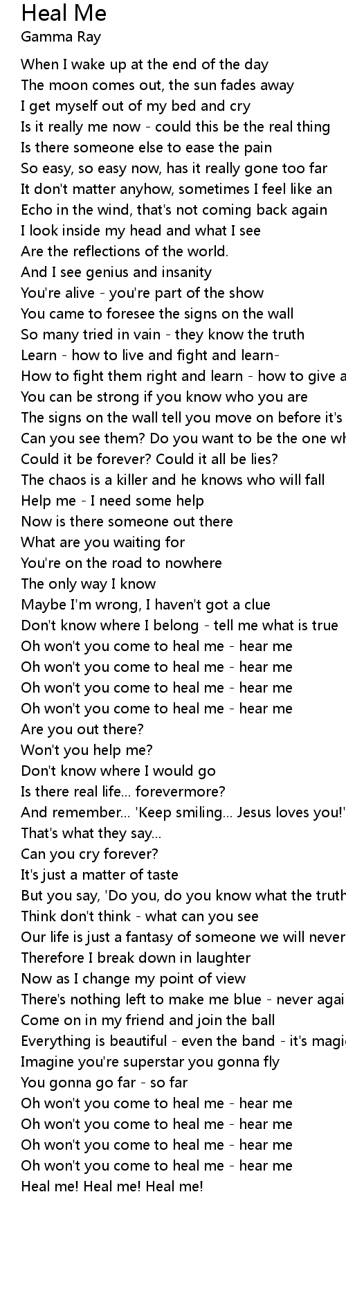 Oh won't you come to heal me - hear me |